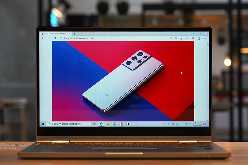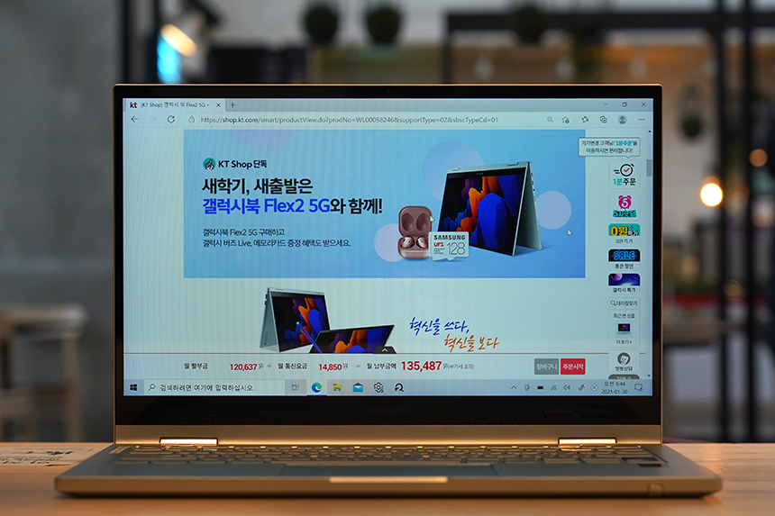 갤럭시북 플렉스2 5G에는 속도 빠른 NVMe SSD가 탑재되어서 웹서핑과 같은 기본적인 작업은 상당히 쾌적한 편입니다. 특히 외부에서도 인터넷을 할 수 있다는 점이 편리한 부분입니다.