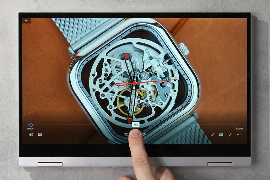 갤럭시북 플렉스2 5G는 크게 태블릿과 노트북 두 가지 형태로 사용할 수 있습니다. 우선 태블릿 모드에서는 터치 스크린을 이용해서 윈도우 태블릿처럼 활용해줄 수 있습니다. 특히 동영상 감상 용도로 적합할 것 같습니다.