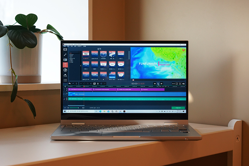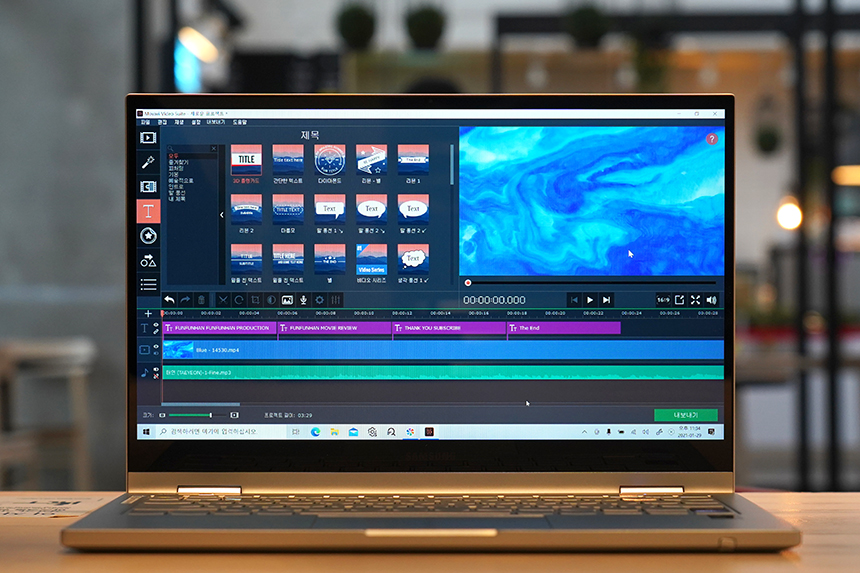 갤럭시북 플렉스2 5G에 탑재된 11세대 인텔 i7-1165G7 프로세서는 간단하게 동영상 컷 편집을 하거나 자막을 다는 등의 작업은 충분히 수행할 수 있는 성능을 제공합니다.