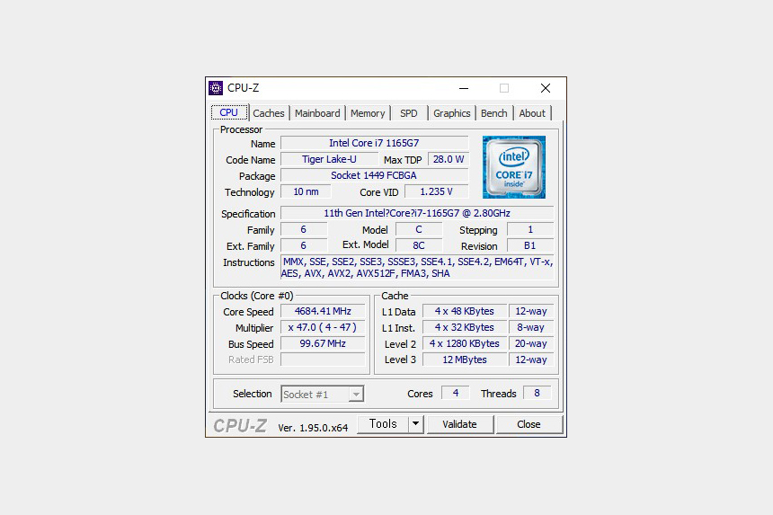 갤럭시북 플렉스2 5G의 스펙을 살펴보면 11세대 인텔 i7-1165G7 프로세서가 탑재되었습니다. 4코어 8스레드를 지원하고 최대 부스트 클럭은 4.7GHz입니다.