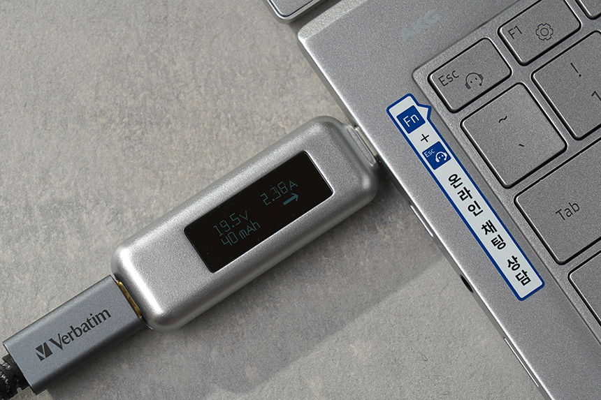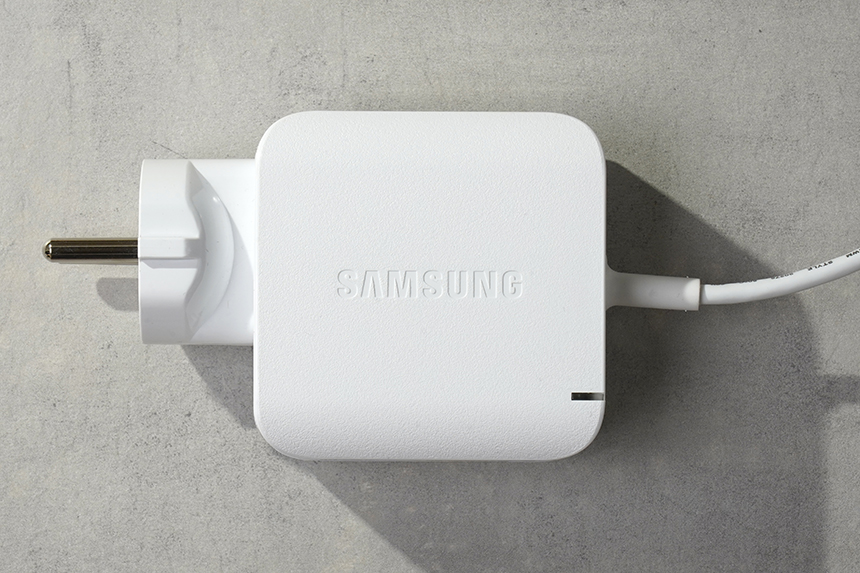 어댑터는 전원 커넥터 일체형으로 제작되었습니다. 그래서 크기가 상대적으로 콤팩트하다는 장점이 있기는 하지만 멀티탭에 연결할 때 간섭이 생길 수 있다는 단점도 있습니다. 그리고 전원 상태를 표시해주는 파란색 LED도 탑재되었습니다.