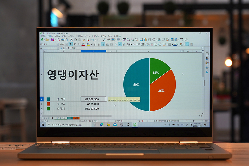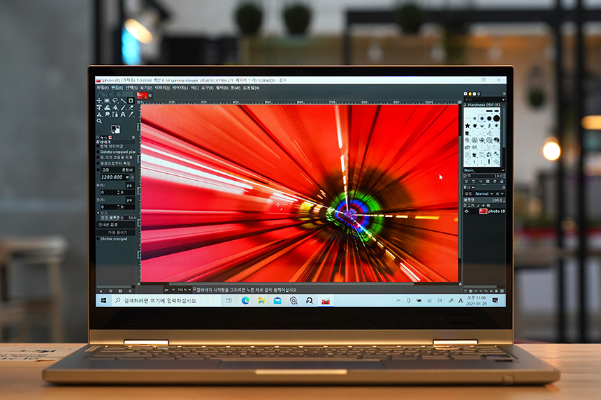 갤럭시북 플렉스2 5G에는 1,300만 화소의 카메라가 탑재되었습니다. 그래서 바로 사진을 편집해서 5G 네트워크를 통해서 다른 사람들에게 공유할 수 있습니다.