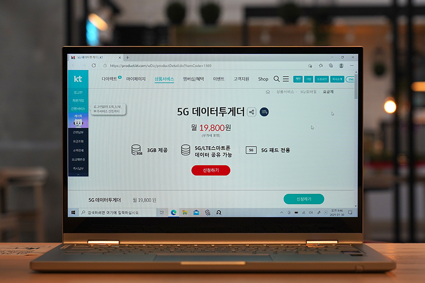 갤럭시북 플렉스2 5G는 이름에서도 알 수 있듯이 5G 네트워크 연결 기능을 탑재하고 있다는 장점이 있습니다. 그래서 5G 서비스를 제공하는 KT에서는 다양한 혜택과 요금제를 준비해 놓았습니다.