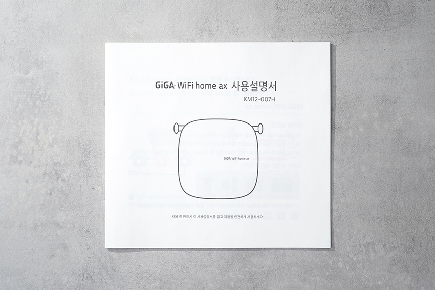 구성품을 살펴보면 사용설명서가 한 장 포함되어 있습니다. KT GiGA WiFi home ax 공유기와 연동하는 방법이 설명되어 있으니 사용하기 전이나 장애가 생긴다면 한 번 정도 읽어 보는 것이 좋을 것 같습니다.