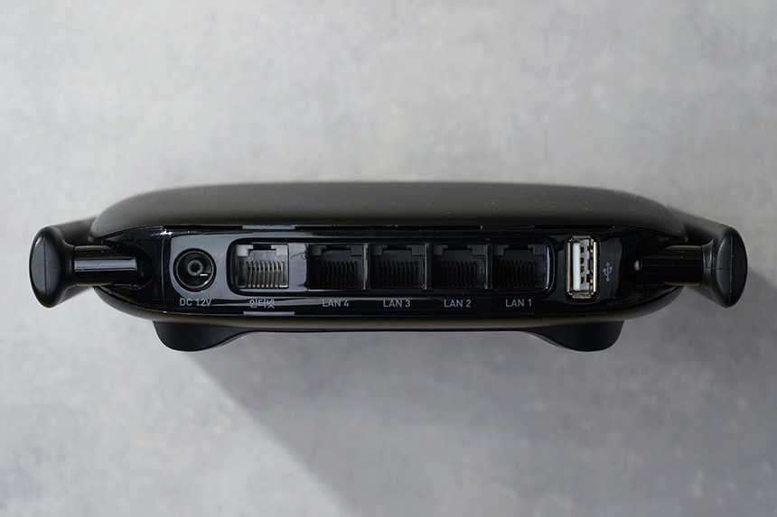 뒤쪽을 살펴보면 DC 12V 전원과 인터넷 그리고 4개의 기가비트 유선랜 단자가 배치되어 있습니다. 그래서 데스크톱은 물론이고 KT 기가지니와 같은 IPTV를 연결해서 사용할 수 있습니다.