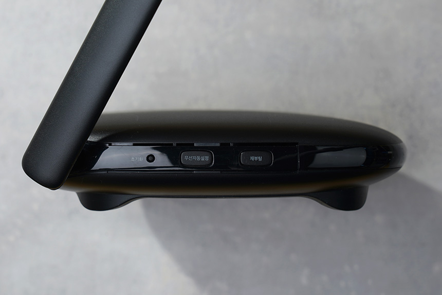 앞쪽을 살펴보면 무선자동설정과 재부팅 버튼이 배치되어 있습니다. 그리고 위쪽에 배치된 LED들을 통해서 현재 상태를 직관적으로 확인할 수 있도록 디자인되었습니다.