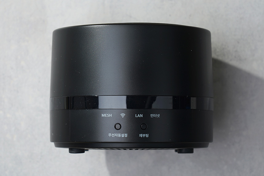 앞쪽을 살펴보면 무선자동설정과 재부팅 버튼이 배치되어 있습니다. 그리고 위쪽에 배치된 LED들을 통해서 현재 상태를 직관적으로 확인할 수 있도록 디자인되었습니다.