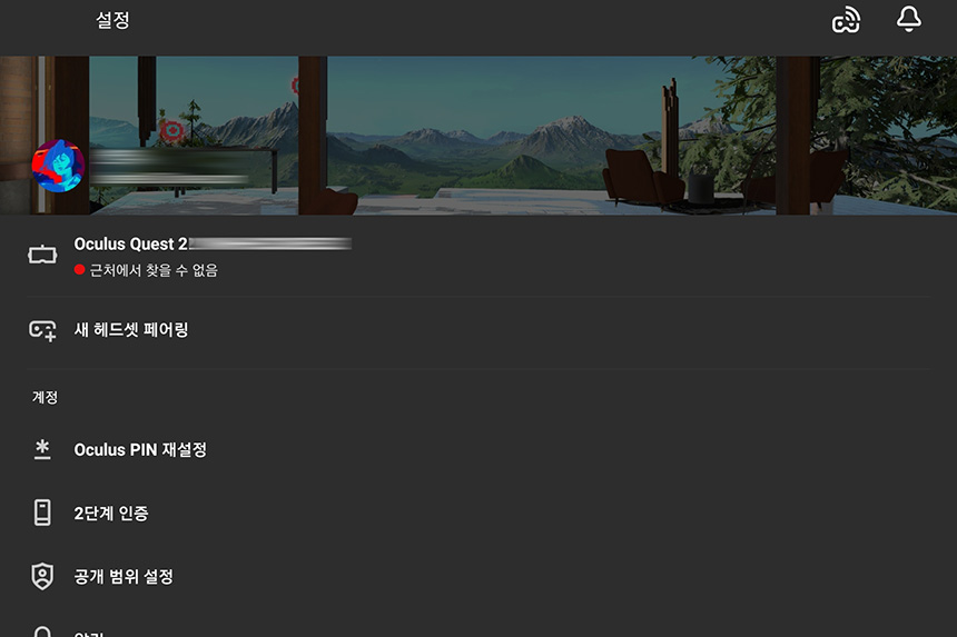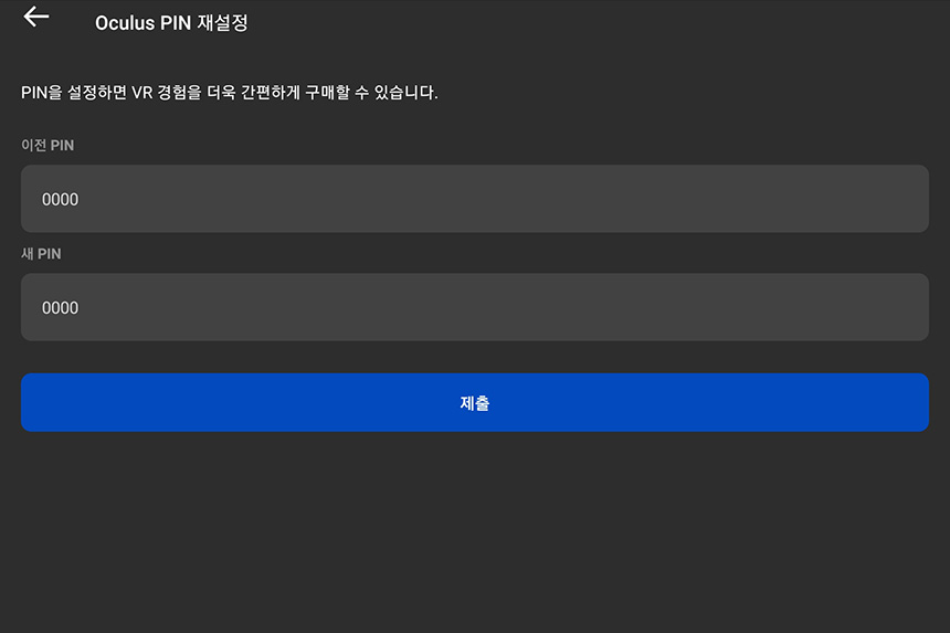 그리고 사용자 이름을 변경할 때 Oculus PIN 번호가 필요한데 아마도 설정한 기억이 없을 것입니다. 이럴 때는 스마트폰에 설치된 오큘러스 앱을 살펴보면 핀을 재설정하는 메뉴가 준비되어 있습니다.