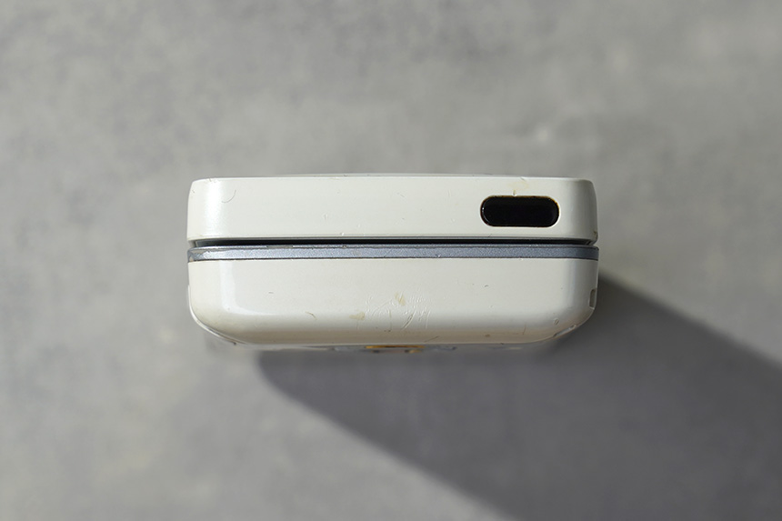 반대쪽 옆면에는 볼륨 버튼들이 배치되어 있습니다. 그리고 위쪽에 스트랩을 걸 수 있는 고리가 준비되어 있었습니다. 예전에는 피처폰에 LED 튜닝을 하는 것이 인기가 있었던 시대도 있었는데요. 알록달록한 맛이 있습니다.