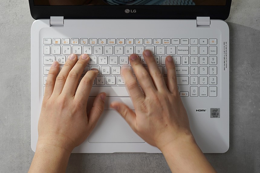 LG전자 15UD50N-GX30K 노트북에는 97키 풀사이즈 키보드가 탑재되었습니다. 특히 숫자 키패드가 탑재되어서 오피스를 이용해서 문서 작업을 많이 하는 분들에게도 활용도가 높은 편입니다.