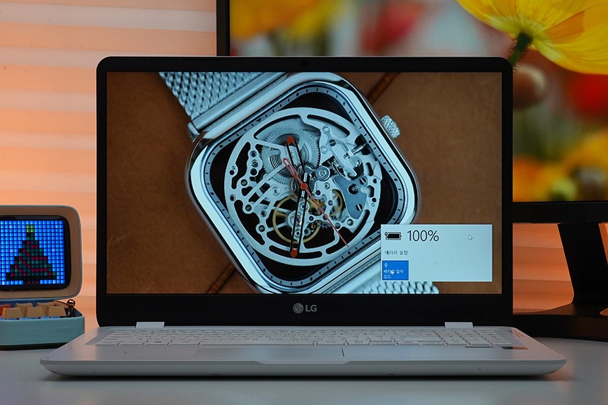 배터리는 35Wh 용량의 제품이 탑재되었고 FULL HD 해상도의 동영상을 화면 밝기 50% 배터리 절약 모드에서 7시간 50분 정도 재생할 수 있었습니다. 배터리 사용 시간은 화면의 밝기나 작업에 따라서 크게 차이가 날 수 있습니.