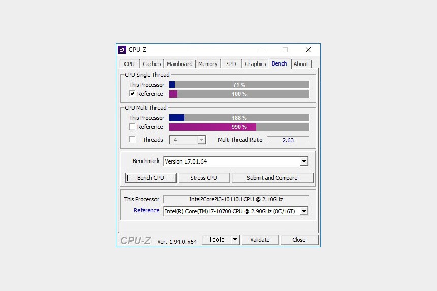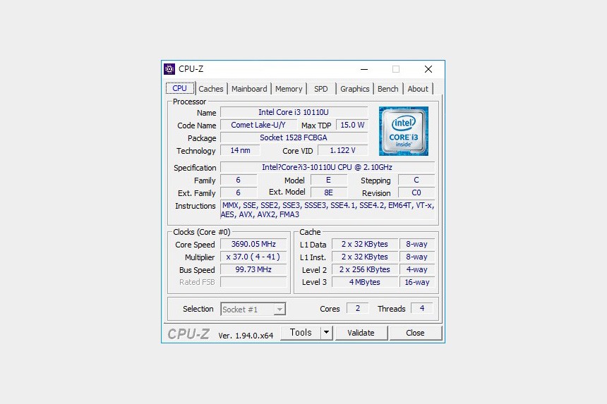 10세대 인텔 코어 i3-10110U 프로세서의 싱글 스레드 성능은 데스크톱용 CPU와 비교해도 크게 뒤떨어지는 수준은 아닙니다. 그래서 간단한 작업은 쾌적한 편입니다.
