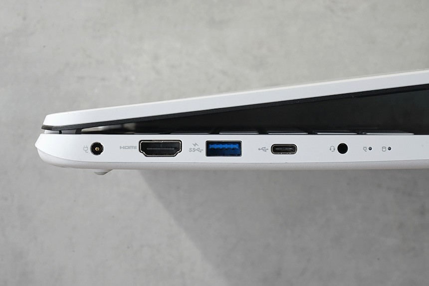 입출력 단자를 확인해 보면 왼쪽에는 전원과 HDMI 그리고 USB 3.0과 USB 타입C, 오디오 콤보 단자가 탑재되었습니다. 그리고 보조 배터리를 이용해서 충전할 수 있는 USB PD 충전은 아쉽게도 지원하지 않습니다.