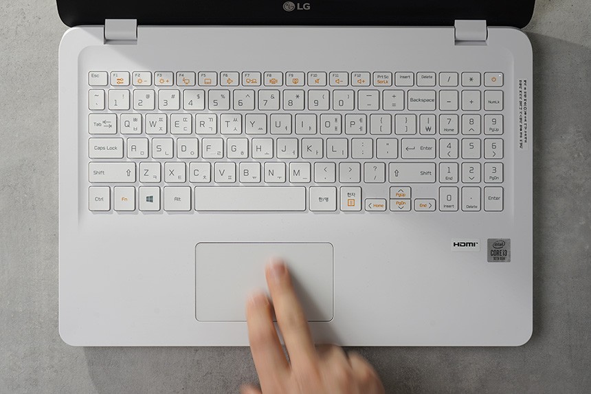 LG전자 15UD50N-GX30K 노트북의 상판은 깔끔한 화이트 컬러로 제작되었습니다. LG에서 출시되는 노트북들의 기본적인 색상이라고 할 수 있고 튀지 않는 편이어서 학생이나 직장인들이 사용해도 부담스럽지 않습니다.