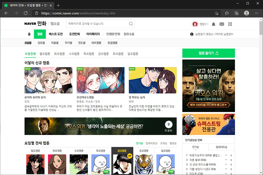 네이버의 웹툰은 정말 많은 작품이 준비되어 있어서 다양한 사용자들의 기호를 만족시키고 있다는 특징이 있습니다. 그리고 인기 작품인 덴마의 2차 창작물인 덴큐도 연재된다고 하는데 아직 일정이 정확하게 공개되지는 않았습니다.