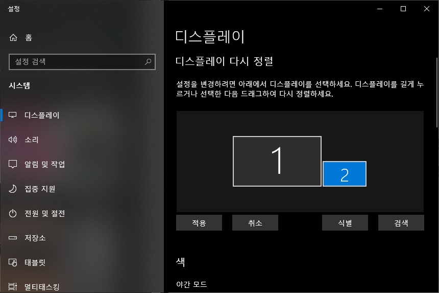 PC와 갤럭시탭S7 플러스의 세컨드 스크린 연결이 완료되면 윈도우10 기준으로 별도의 모니터처럼 동작합니다. 그리고 디스플레이 설정에서 위치를 적절하게 변경해주면 됩니다.