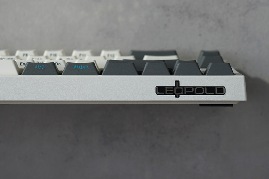 앞쪽을 살펴보면 레오폴드의 로고가 부착되어 있습니다. 참고로 레오폴드는 국내를 대표하는 키보드 제조사입니다. 특히 제품들의 완성도가 상당히 높은 편이어서 키보드를 좋아하는 분들에게 사랑받는 브랜드입니다.