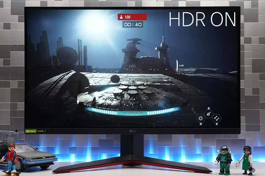 실제로 HDR 10 기능을 켜고 끄는 것에 따라서 게임의 화면이 많이 달라지는 편입니다. 최신 게임들은 대부분 지원하는 기능인 만큼 가능하면 켜고 플레이하는 것을 추천합니다. 참고로 LG 울트라기어 27GN650의 화면 밝기는 350 nits이고 명암비는 1000:1입니다.