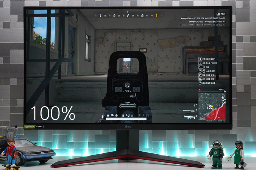 LG 울트라기어 27GN650에는 IPS 1ms 디스플레이가 탑재되었습니다. 응답속도가 매우 빨라서 조금 더 박진감 넘치는 게임을 플레이할 수 있습니다. 다만 일부 게임에서 잔상이 발생할 수 있는데요. 많이 거슬린다면 응답속도를 ‘빠르게’로 설정해서 사용하는 것을 추천합니다.