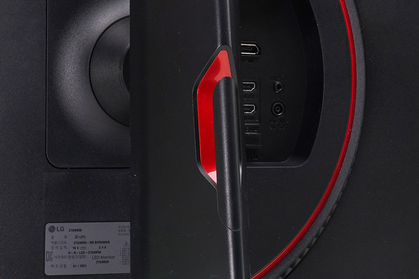 LG 울트라기어 27GN650의 뒷면은 상당히 세련된 느낌을 주는 편입니다. 그래서 게이밍 모니터를 벽에 붙여서 배치하는 것이 아니라 방의 중간에 설치해서 사용하는 분들에게도 유용할 것으로 예상합니다.