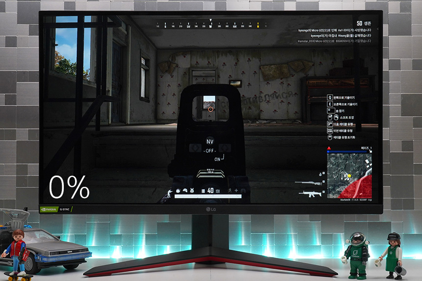 LG 울트라기어 27GN650에는 다크맵 모드(Black Stabilizer)라는 기능이 탑재되어 있습니다. 어두운 화면의 명암비를 높여주는 기능으로 숨어있는 적을 조금 더 분명하게 인지할 수 있도록 도와주는 역할을 합니다.