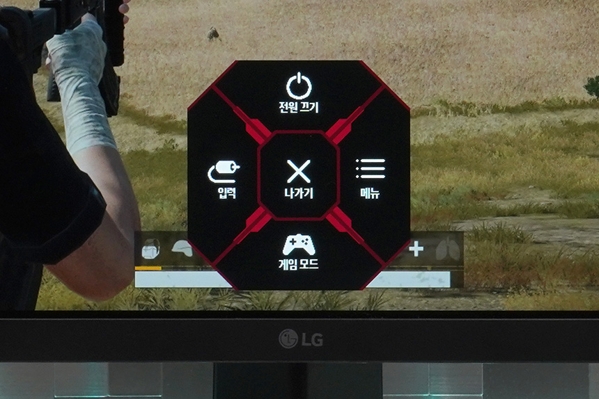 LG 울트라기어 27GN650의 아래쪽에는 조이스틱 버튼이 탑재되어 있고 버튼을 누르면 메인 메뉴가 활성화됩니다. 그리고 전원을 끄거나 입력 장치를 전환하고 게임모드를 변환할 수 있는 기능을 제공합니다.