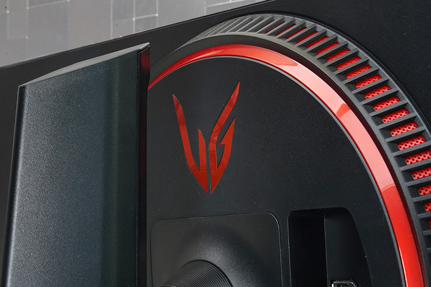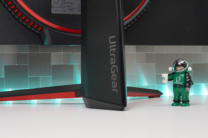 LG 울트라기어 27GN650의 후면을 보면 UltraGear의 약자 UG를 날개 모양으로 형상화한 로고가 각인되어 있습니다. 특히 저는 레드 컬러가 상당히 인상적이라고 생각되었습니다.
