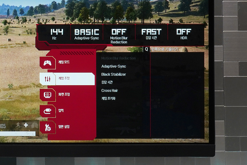 게임 조정에서는 Adaptive-Sync나 다크맵 모드 그리고 응답 시간 등 게임에 관련된 기능을 설정할 수 있습니다. 핵심 기능들이 모여 있으니 자세하게 확인한 후에 설정하는 것을 추천합니다.