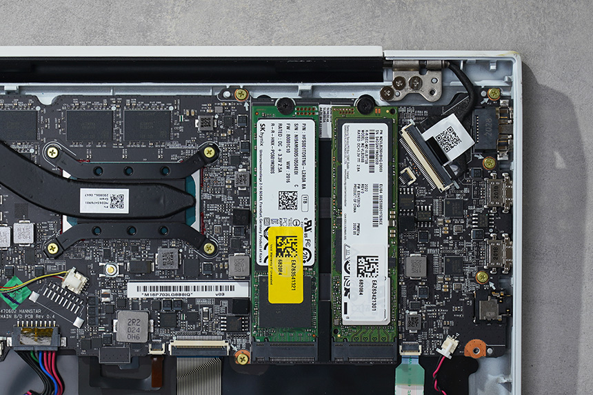 LG 그램 16 노트북에는 1개의 확장 슬롯이 준비되어 있습니다. 그래서 SATA3 방식보다 훨씬 속도가 빠른 NVMe SSD를 추가 장착하여 2TB까지 확장할 수 있습니다. 대용량 데이터를 많이 다루는 분들에게 유용한 부분입니다.