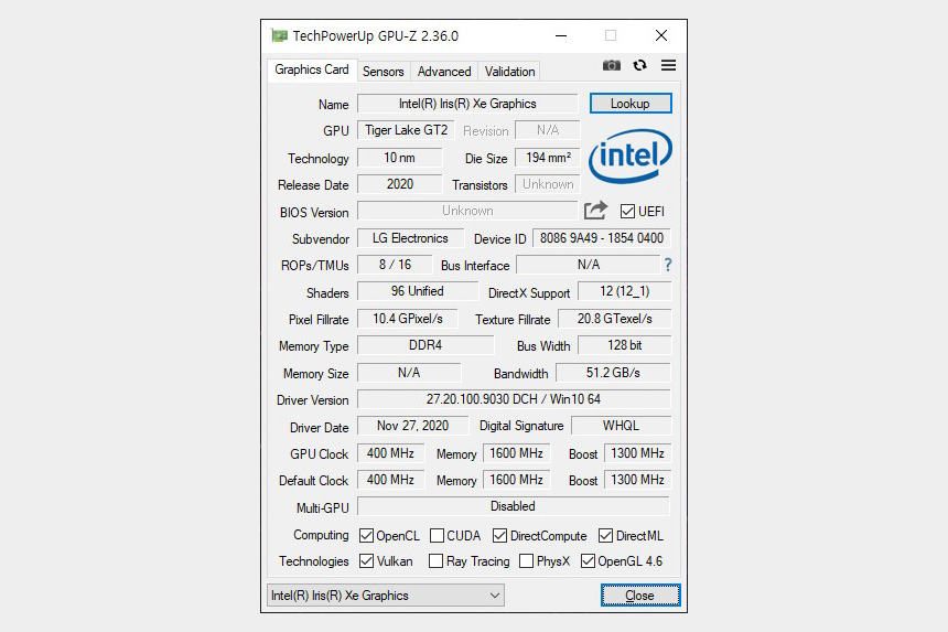 LG 그램 16 노트북에는 인텔 아이리스 Xe 내장 그래픽카드가 탑재되었습니다. 이전 세대의 제품들과 비교해서 성능이 크게 향상되어서 게임까지도 어느 정도 플레이할 수 있습니다.