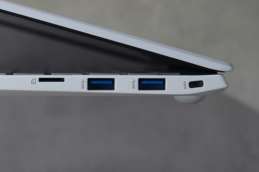 반대쪽 옆면에는 UFS(마이크로 SD 겸용) 카드 슬롯과 2개의 USB 3.1 A타입 그리고 켄싱턴 락 홈이 준비되어 있습니다. 전체적인 확장성은 준수한 수준이라고 판단되었습니다.