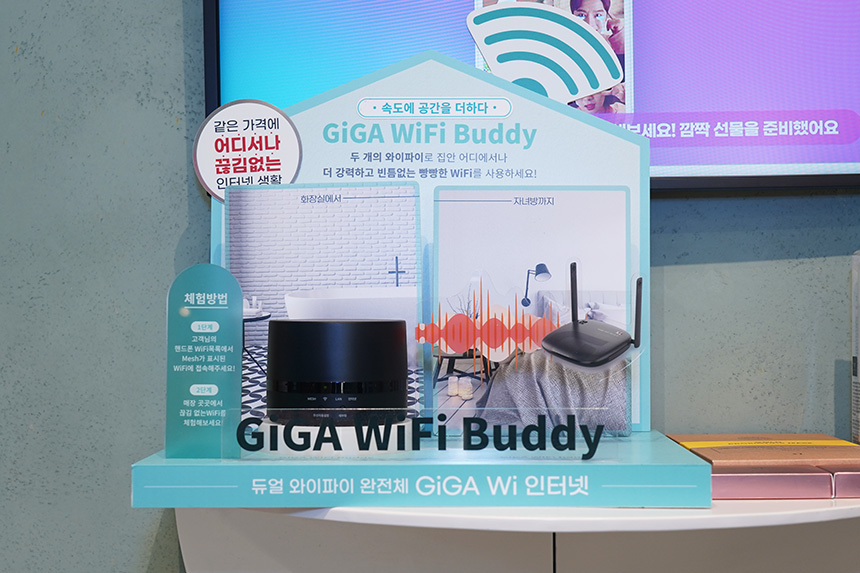 KT에서는 기가 와이파이 서비스를 제공하고 있습니다. 그리고 아파트와 같이 벽이 많은 공간에서도 안정적으로 무선 인터넷을 사용할 수 있도록 메시 와이파이 기능이 추가된 기가 와이파이 버디도 최근에 출시했습니다. 가정에서 WiFi가 잘 터지지 않는 공간이 있는 분들은 한 번 관련 내용을 확인해 보시길 바랍니다.