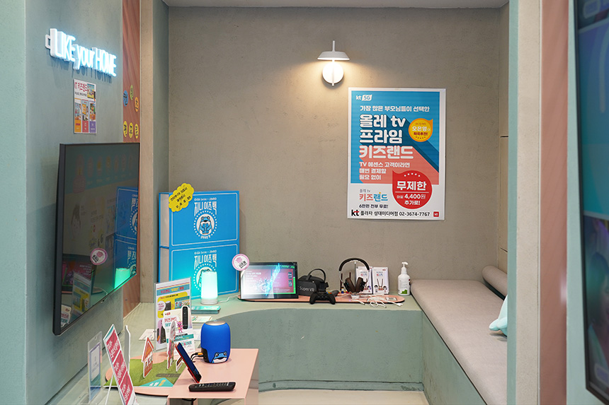 KT M&S 성대미디어점에는 KT의 다양한 서비스를 실제로 체험해 볼 수 있는 2개의 작은 공간이 준비되어 있었습니다. 만약 근처를 방문하실 계획이 있다면 한 번 정도에 체험해 보시는 것이 좋을 것 같습니다.
