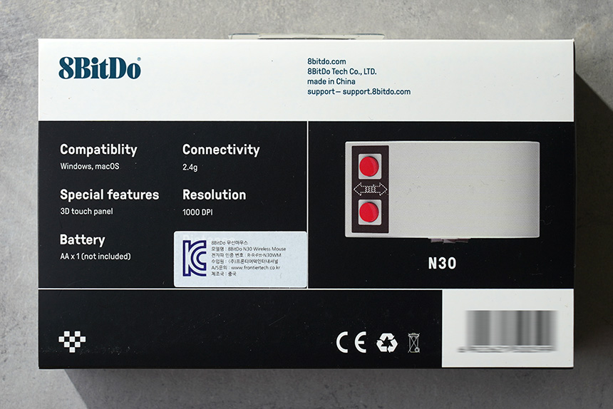 8BitDo N30 무선마우스의 박스는 깔끔한 형태로 제작되었고 전면에는 윈도우와 맥OS에서 사용할 수 있는 제품이라는 문구가 표시되어 있습니다. 그리고 무선 방식은 2.4GHz 주파수를 지원합니다.