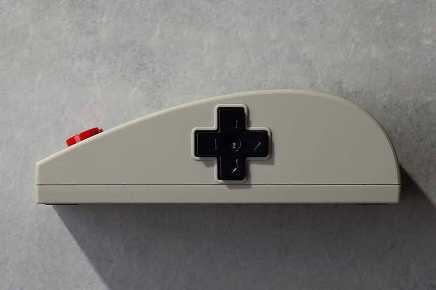8BitDo N30 무선마우스의 옆쪽을 살펴보면 패미컴 컨트롤러의 시그니처라고 할 수 있는 십자키(D-Pad)가 배치되어 있습니다. 그래서 이전과 다음 페이지는 물론이고 페이지 업, 다운 용도로도 활용할 수 있습니다.