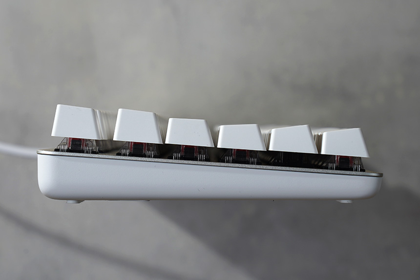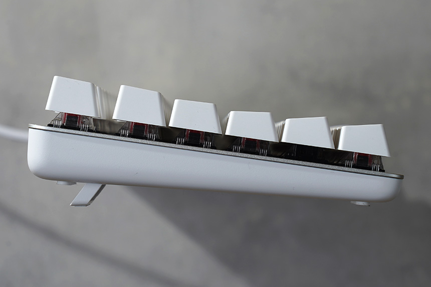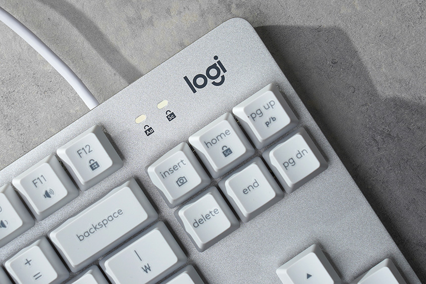 로지텍 K835 TKL 키보드에는 알루미늄 프레임이 적용되어서 뛰어난 내구성을 제공합니다. 그리고 키캡과 스위치가 노출된 비킬 스타일로 제작되어서 청소가 상대적으로 간편하다는 장점이 있습니다.