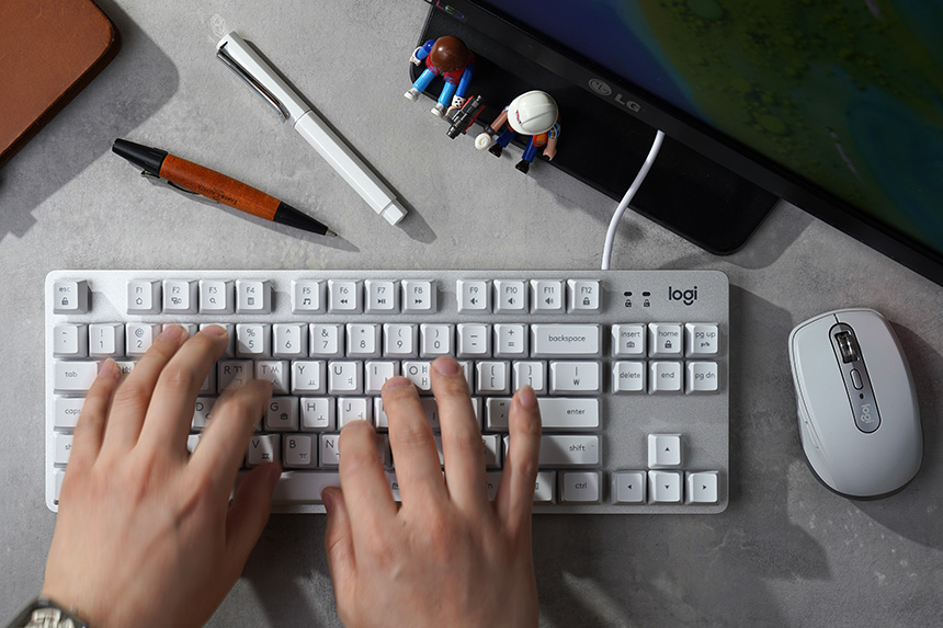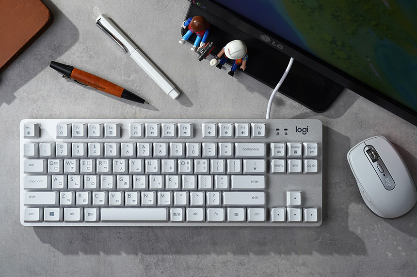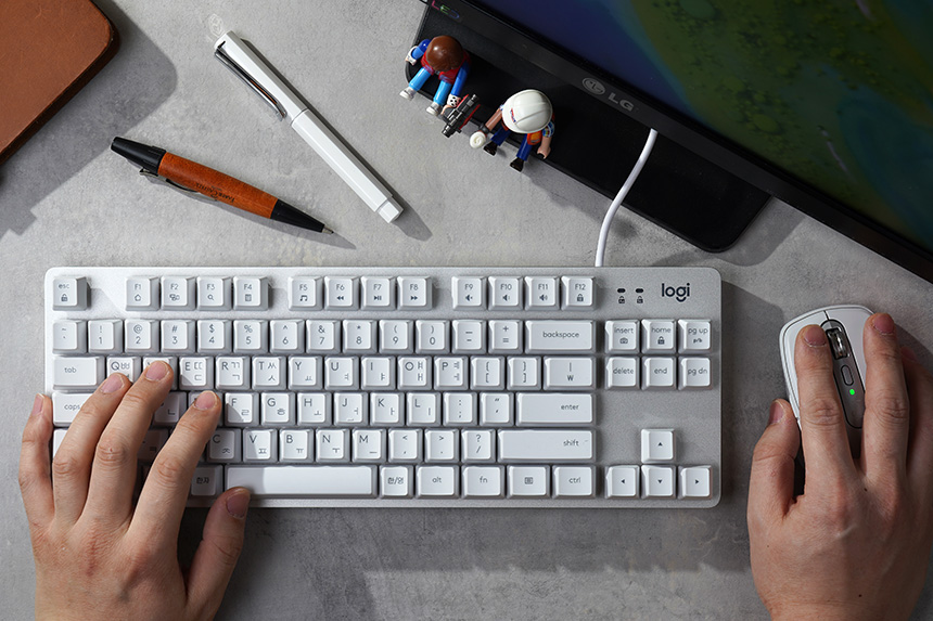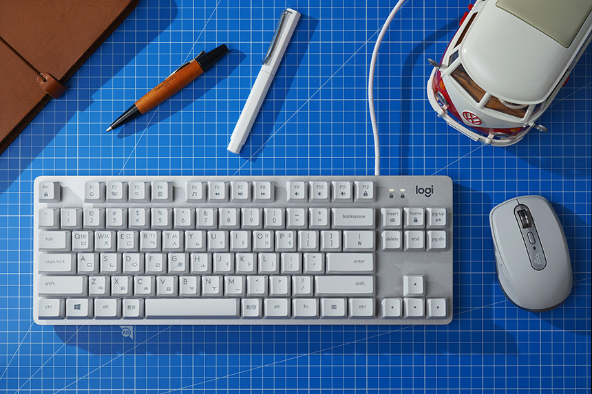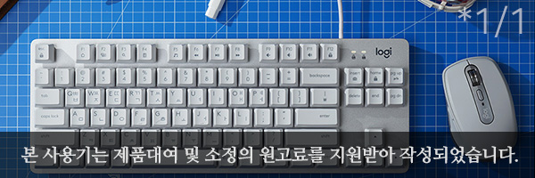이번 사용기에서 살펴볼 로지텍 K835 TKL 키보드 오프화이트 색상은 게임 용도는 물론이고 사무용으로 사용해도 좋을 만한 디자인이라고 생각되었습니다. 특히 로지텍 애니웨어3 마우스와 디자인적인 매칭이 좋은 편입니다.