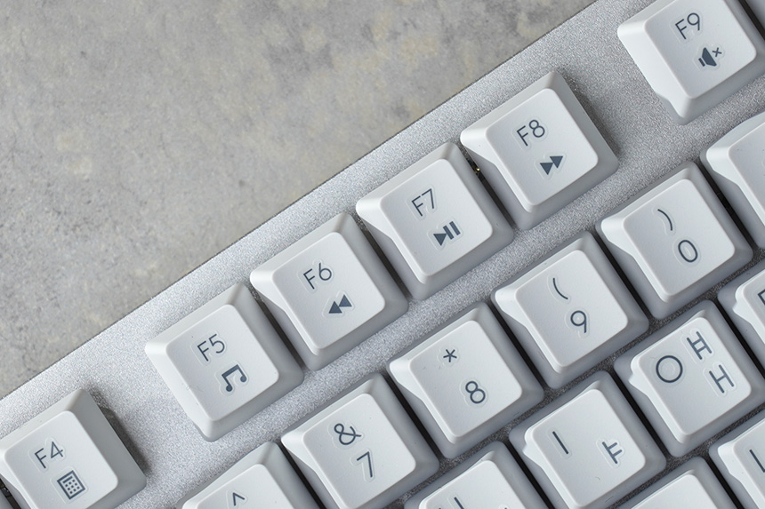 로지텍 K835 TKL 키보드의 키캡은 스텝스컬쳐2 방식으로 제작돼있습니다. 키보드 열 마다 조금씩 다른 각도를 가지도록 조정되어 있어서 편안하게 타이핑을 할 수 있습니다. 일반적으로 많이 사용되는 구조라고 별도의 적응 시간이 필요하지 않습니다.