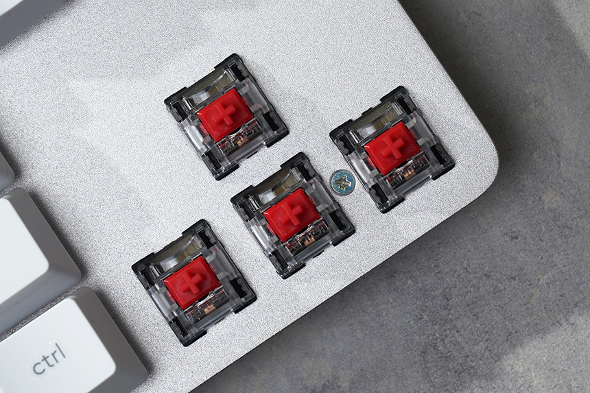 로지텍 K835 TKL 키보드에는 리니어 타입의 TTC 적축 기계식 스위치가 탑재되었습니다. 청축이나 갈축 스위치처럼 걸리는 느낌이 없어서 상대적으로 소음이 적은 편이라는 특징이 있습니다.