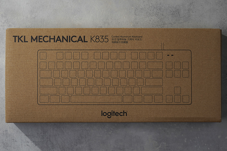 로지텍 K835 TKL 키보드의 박스는 이중으로 구성되어 있고 내부 박스는 단단한 형태로 제작되어서 택배로 배송을 받아도 크게 문제는 없을 것으로 예상합니다. 그리고 속박스 디자인도 심플한 느낌을 주는 편입니다.