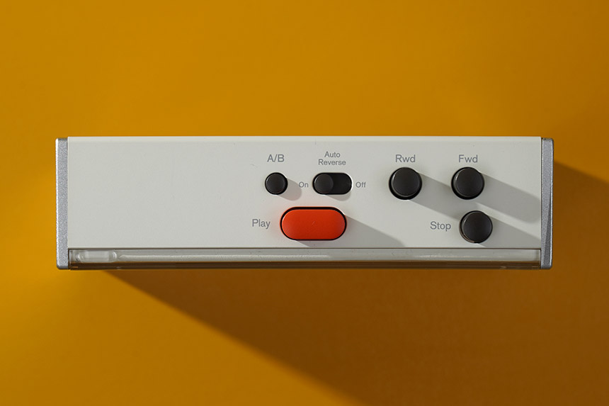 위쪽을 살펴보면 다양한 버튼들이 배치되어 있습니다. 특히 재미있는 부분은 오토리버스 기능을 지원한다는 점입니다. 참고로 카세트테이프를 분리해서 반대로 돌리지 않고도 역재생을 할 수 있도록 도와줍니다.