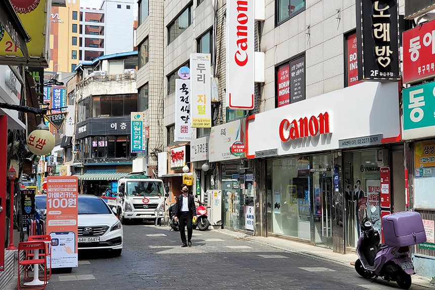 그리고 파리다방이 나오면 왼쪽으로 꺾어서 골목을 들어가 주면 됩니다. 직진하다 보면 캐논이 나오게 됩니다. 그러면 한 블록 정도만 걸어가면 세기 p&c를 찾을 수 있습니다. 스마트폰 지도 기능을 이용하면 어렵지 않게 찾을 수 있을 것 같습니다.
