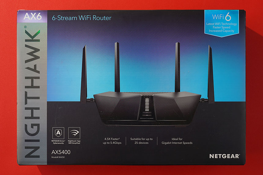넷기어 RAX50 공유기의 박스는 깔끔한 형태로 제작되었습니다. 그리고 전면에는 주요 특징이 설명되어 있습니다. 우선 2.4GHz와 5GHz 대역에서 6스트림 통합 최대 5.4Gbps의 빠른 무선 속도를 지원합니다.