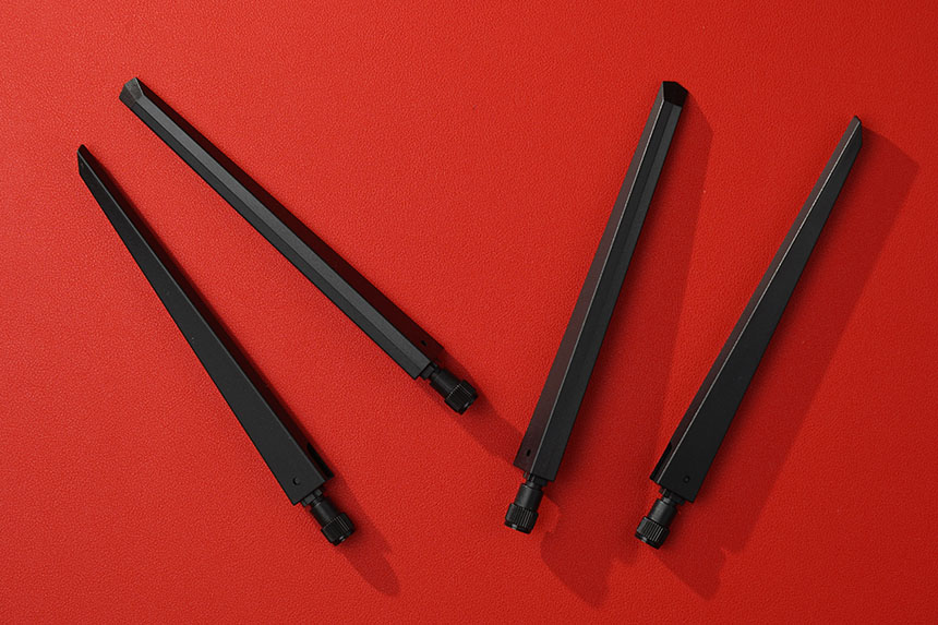 탈착식으로 구성된 4개의 고성능 안테나도 액세서리에 포함되어 있습니다. 사용할 때는 넷기어 RAX50 공유기에 장착해서 설치 장소에 맞게 각도나 방향을 조절할 수 있도록 설계되었습니다.