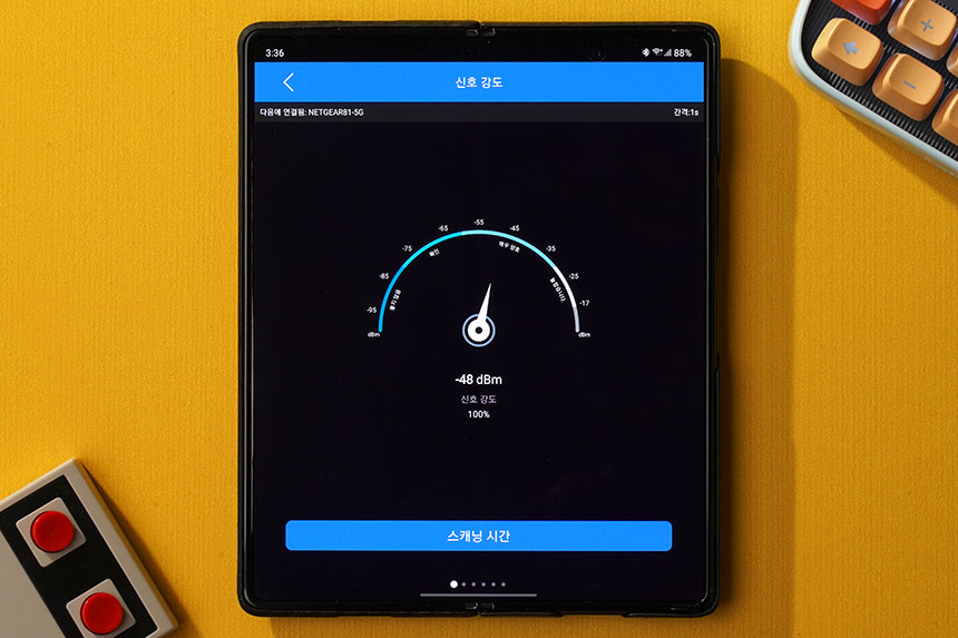 넷기어 RAX50 공유기는 나이트호크 앱을 통해서 초기 설정을 진행할 수 있습니다. 우선 스마트폰으로 공유기에 접속하면 삼성 갤럭시 폴드2 기준으로 위쪽의 와이파이 로고에 6이라는 문구가 추가됩니다.