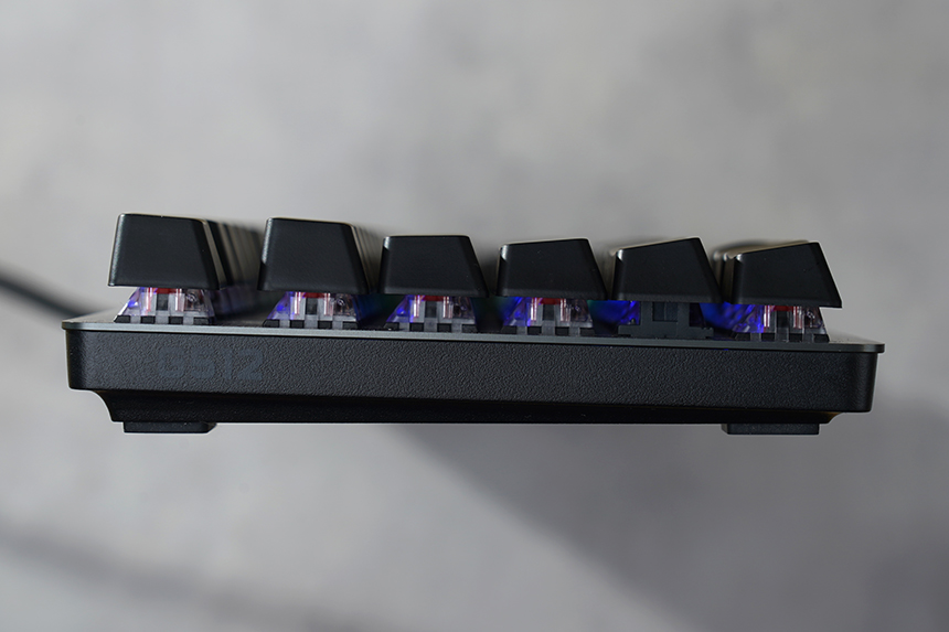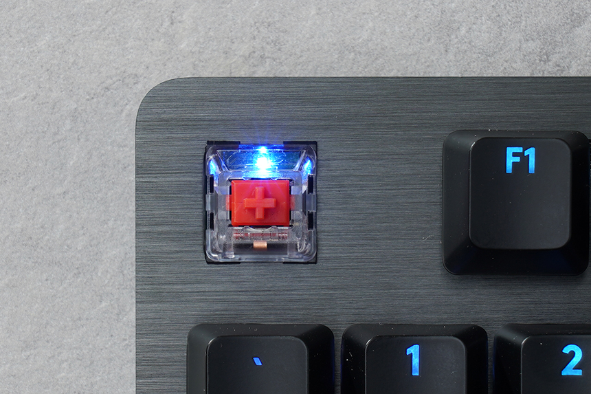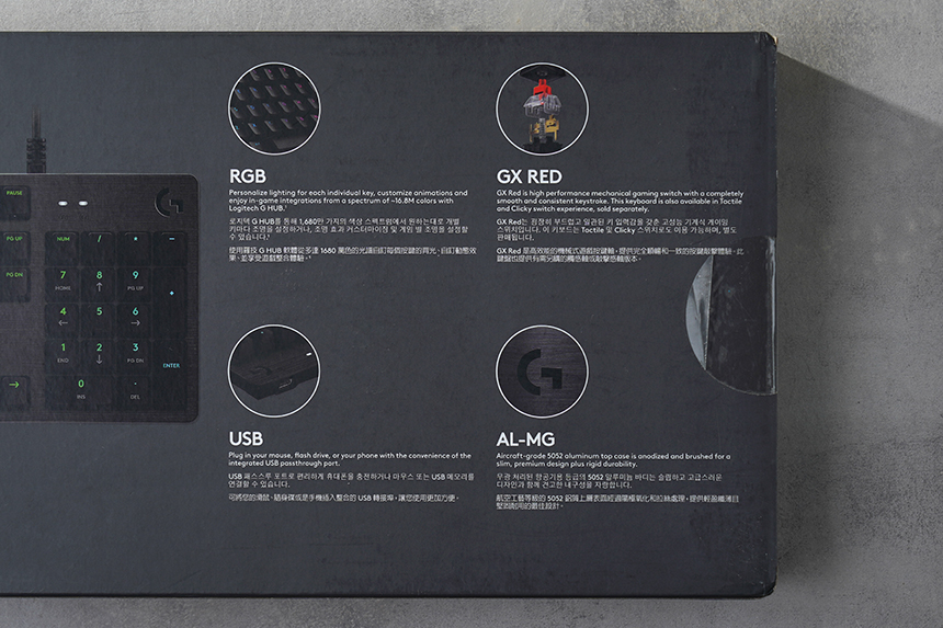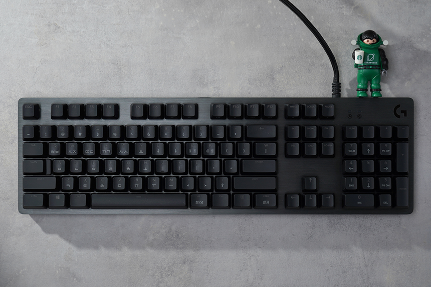 로지텍 G512 GX Red 키보드의 바디는 견고한 5052 알루미늄 마그네슘 합금으로 제작되었습니다. 특히 무광으로 마무리되었고 가로로 헤어라인이 들어가 있어서 상당히 세련된 느낌을 주는 편입니다.