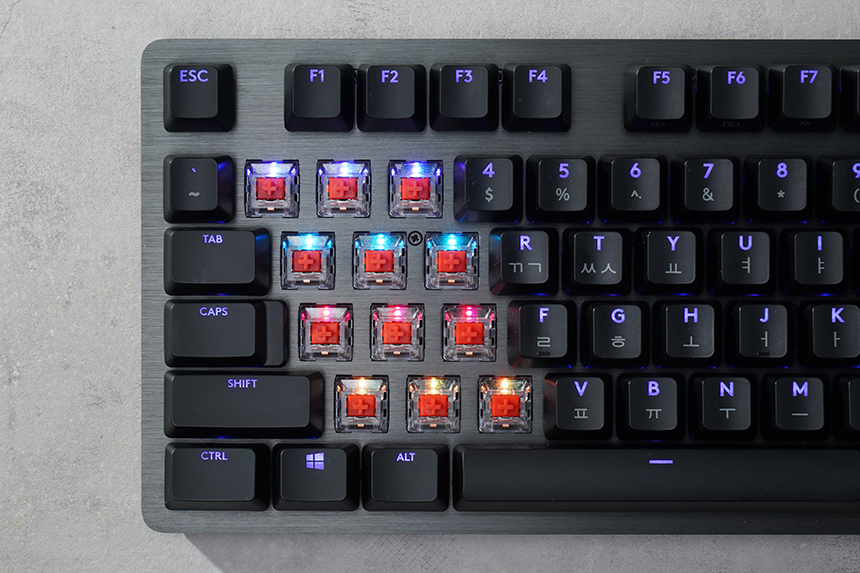 로지텍 G512 GX Red 키보드의 LIGHTSYNC RGB 조명은 개별 키마다 다르게 설정할 수 있습니다. 그래서 자신의 자주 플레이하는 게임의 종류에 따라서 다르게 세팅할 수 있습니다.