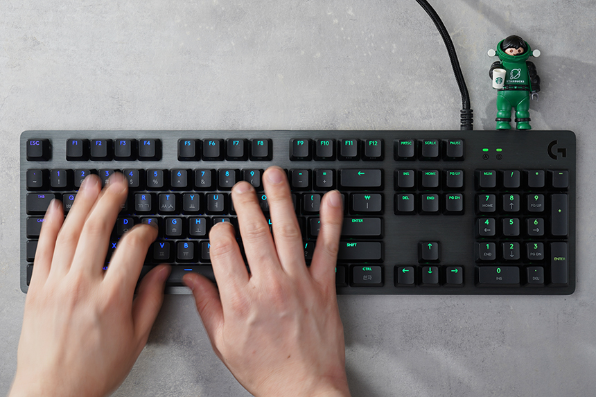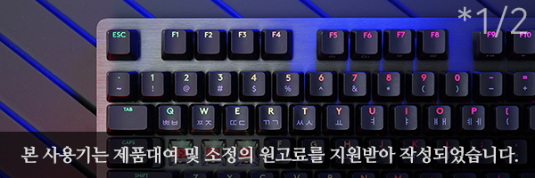 로지텍 G512 GX Red 키보드의 키감은 상당히 정갈한 느낌을 주는 편입니다. 그래서 게임은 물론이고 장시간 타이핑을 해도 크게 불편하지 않았습니다. 특히 클릭키와 비교해서 소음이 적은 편리라는 점이 인상적이었습니다.