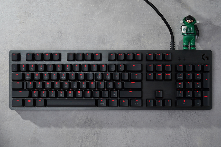 로지텍 G512 GX Red 키보드의 바디는 견고한 5052 알루미늄 마그네슘 합금으로 제작되었습니다. 특히 무광으로 마무리되었고 가로로 헤어라인이 들어가 있어서 상당히 세련된 느낌을 주는 편입니다.