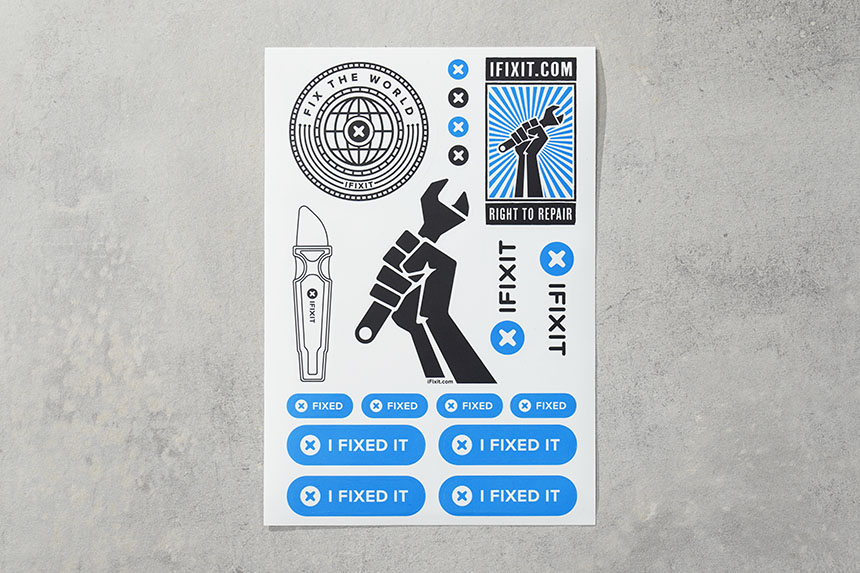 iFixit 기본 드라이버 수리 툴 키트의 구성품을 살펴보면 스티커가 한 장 포함되어 있습니다. 노트북 등에 부착해서 사용하면 좋을 것 같습니다. 저는 특히 가운데 있는 손 모양이 마음에 들었습니다.